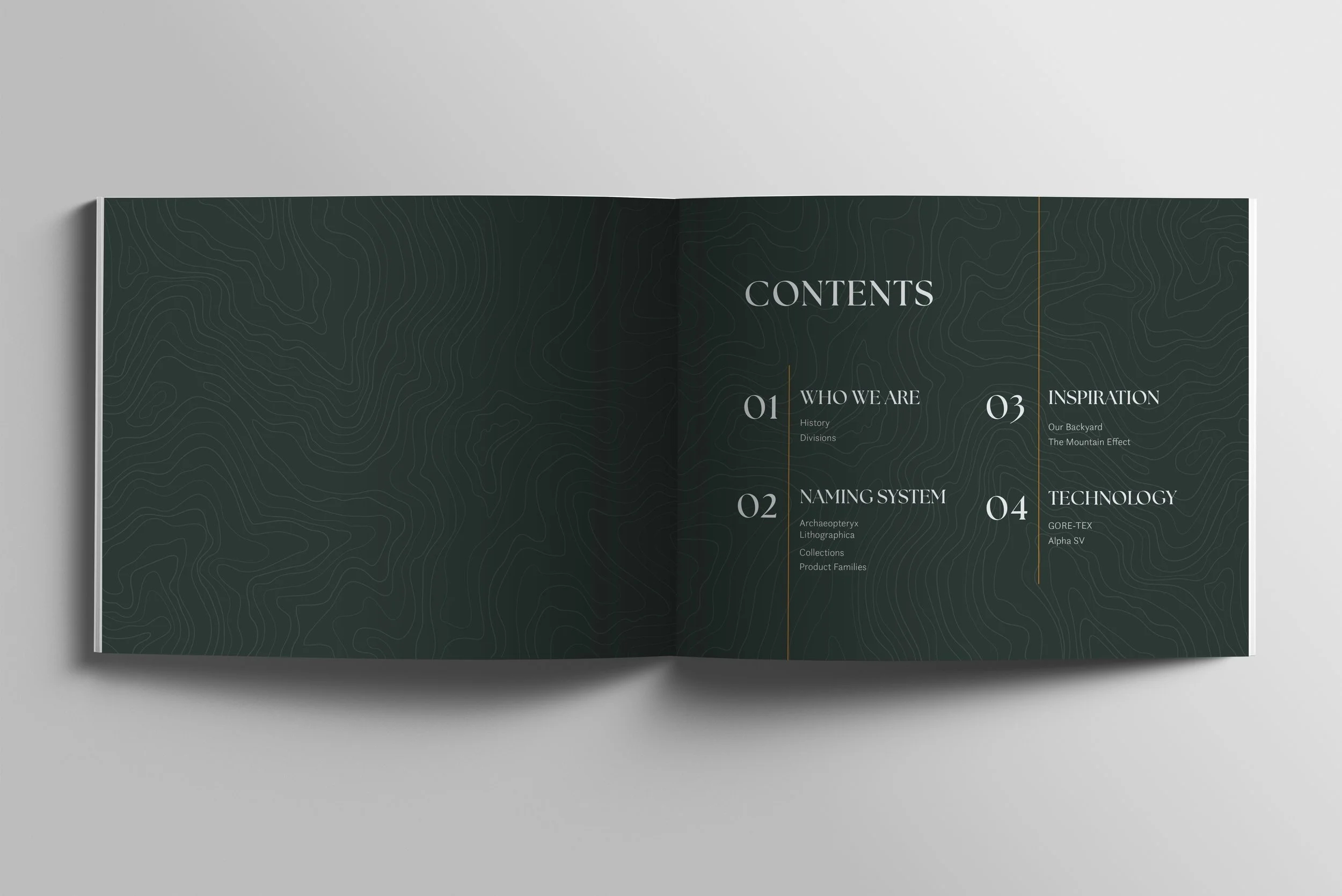 A brand book for Arc'teryx designed to translate the brand’s commitment to excellence into a