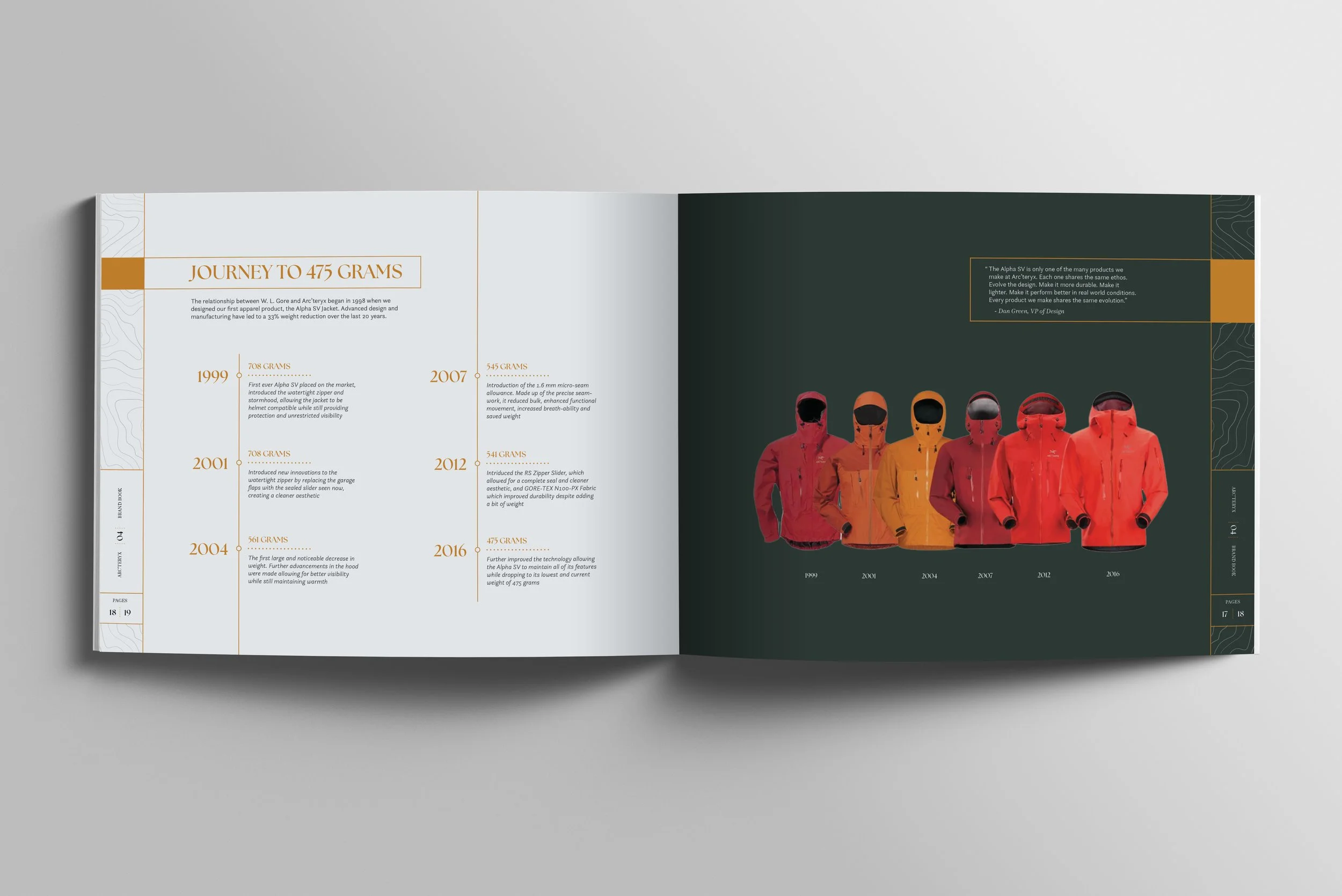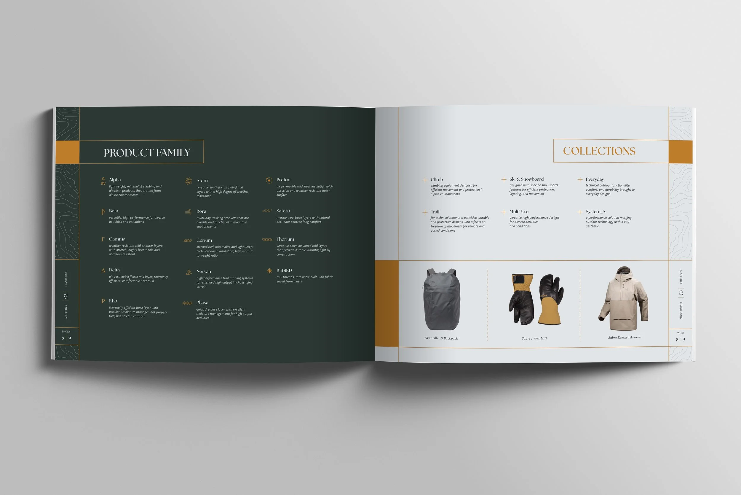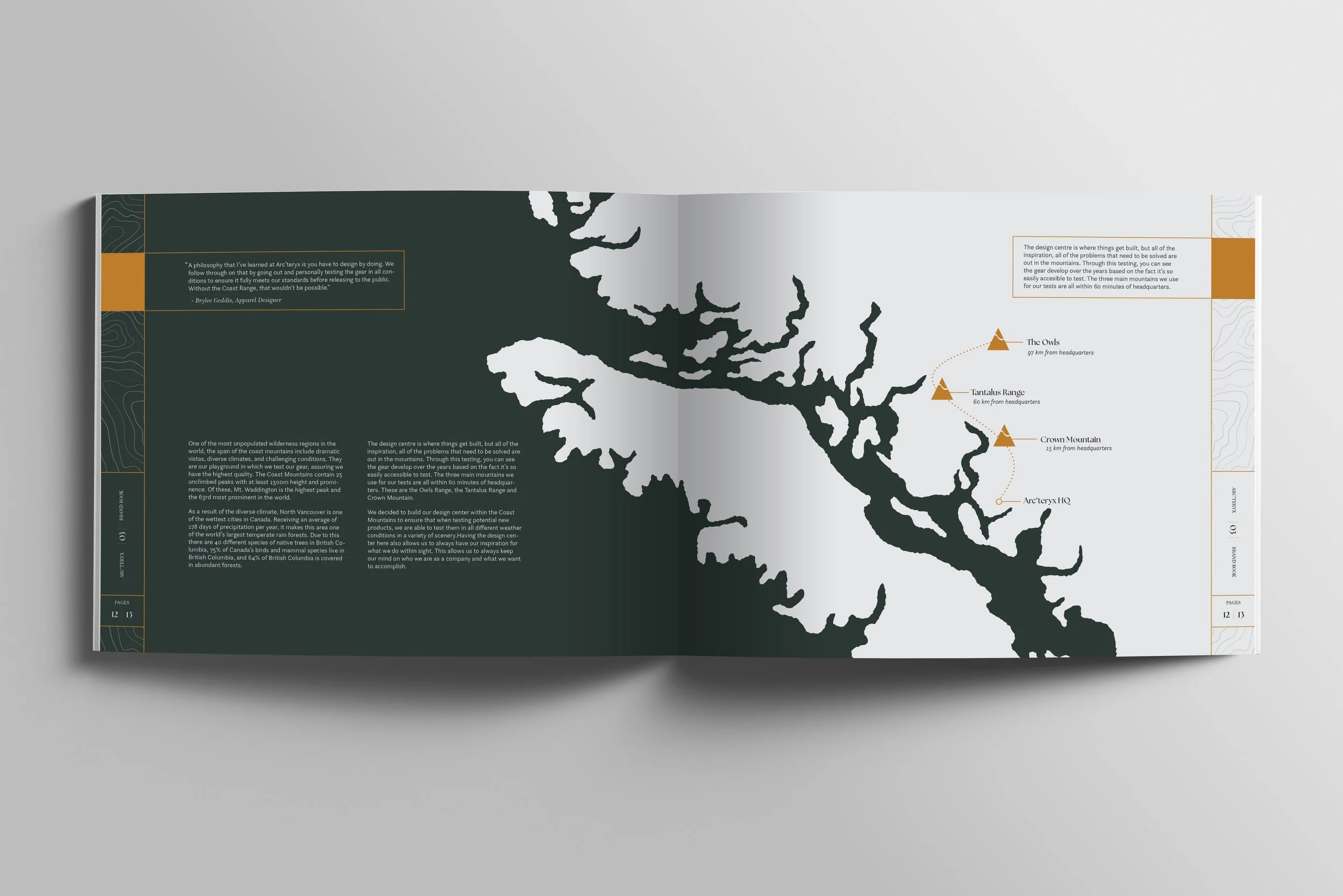 The publication was designed to reflect Arc’teryx’s emphasis on performance and craftsmanship through a disciplined, editorial system. Large-scale imagery showcases products in motion, emphasizing durability and the relationship between design and environment.